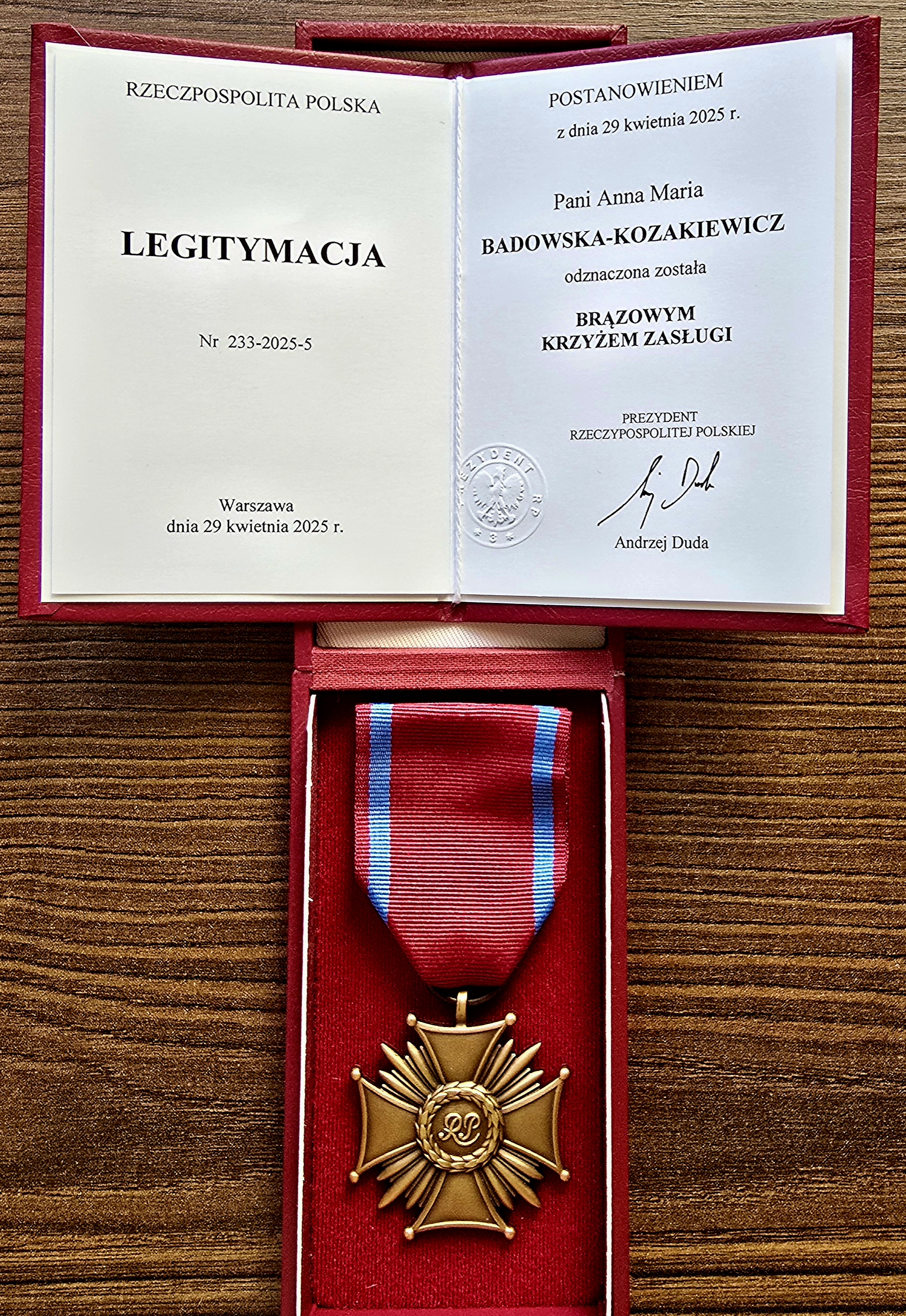 Brązowy Krzyż Zasługi dla Pani Prof. Anny Badowskiej-Kozakiewicz